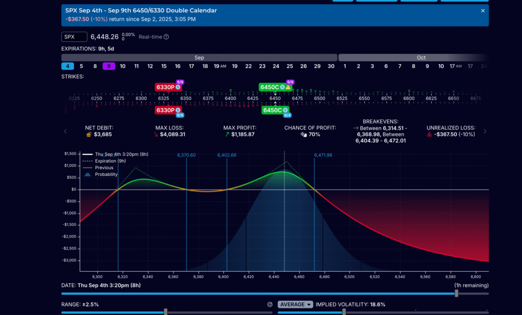Today is Thursday, September 4, 2025, and I’m currently holding an 8-lot 2/7 DTE SPX double calendar that’s set to expire in 8 hours.